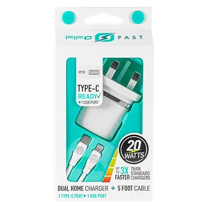 FIFO Fast PD Home Charger + Type C to IOS Fast charging cable