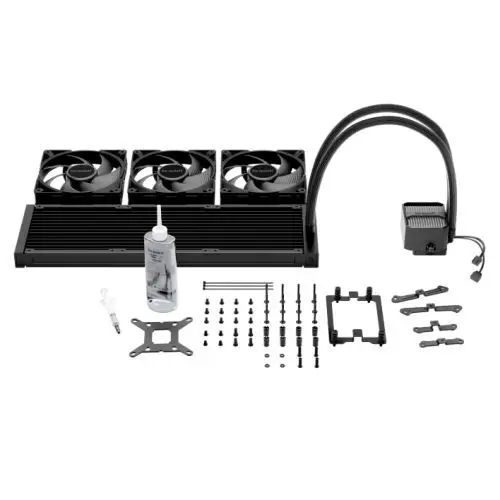 ARGB Liquid CPU Cooler, 3-Chamber Pump, Large Fin Area, Silent Wings 4 PWM Fans, Black.
