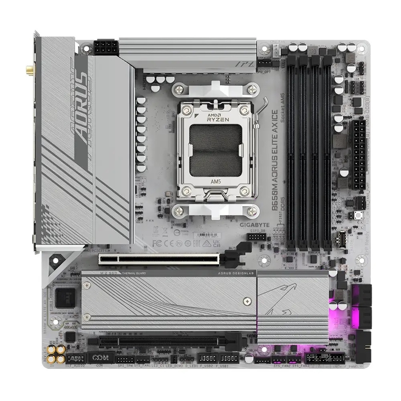 AMD AM5 Socket Motherboard Micro-ATX 4x DDR5 Slots 2x M.2 Sockets 2x USB-C Port Fitted I/O Shield 2.5GbE LAN, Wi-Fi 6E 1x DisplayPort / 1x HDMI Port