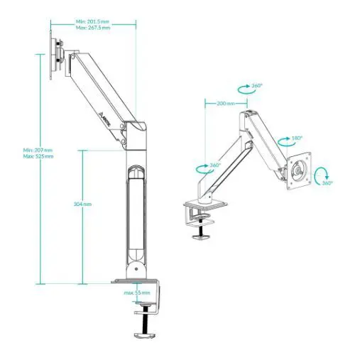 Up to 40" Monitors / 43" Ultrawide, 180° Swivel, 360° Rotation