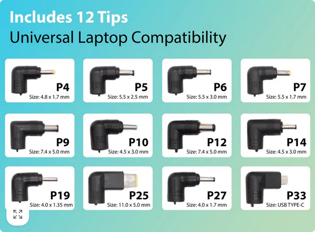 Charger with 12 Interchangeable Connector pins For Laptop, 5V, 9V, 12V, 15V, 16V, 18.5V, 19V, 20V