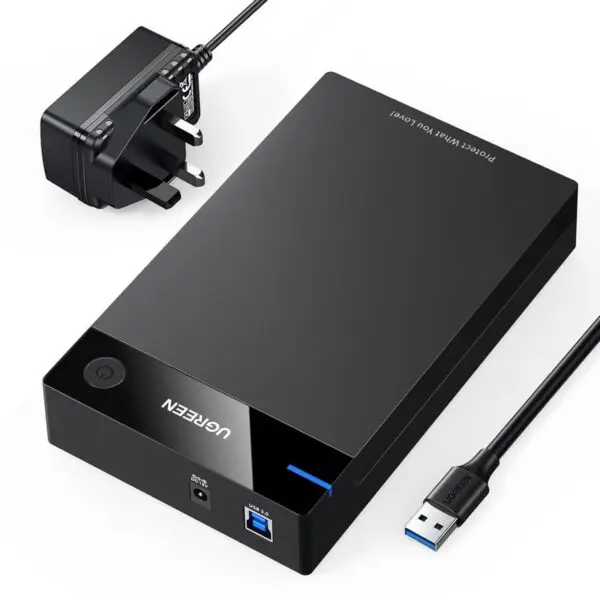 USB 3.0 to SATA HDD Caddy for 2.5 3.5 inch SSD HDD Disk up to 22TB with DC Power Adapter, Tool-free Lay-Flat Hard Drive Docking Station
